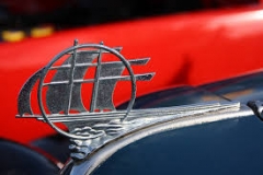 For many years starting before World War II, this stylized ship (or a variant of it) was the logo for which automobile?