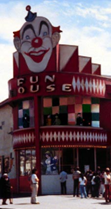 In the funhouse, the wavy walkway was fun, the barrel was challenging, and the wooden superslide was intriguing but intimidating. Then there was the spinning disk. I remember watching the older kids slipping off the spinning disk and sliding into what I remember was a low cushioned wall. That disk was ominous. It still haunts me. I think of it as a metaphor for life; no need to explain why--right?