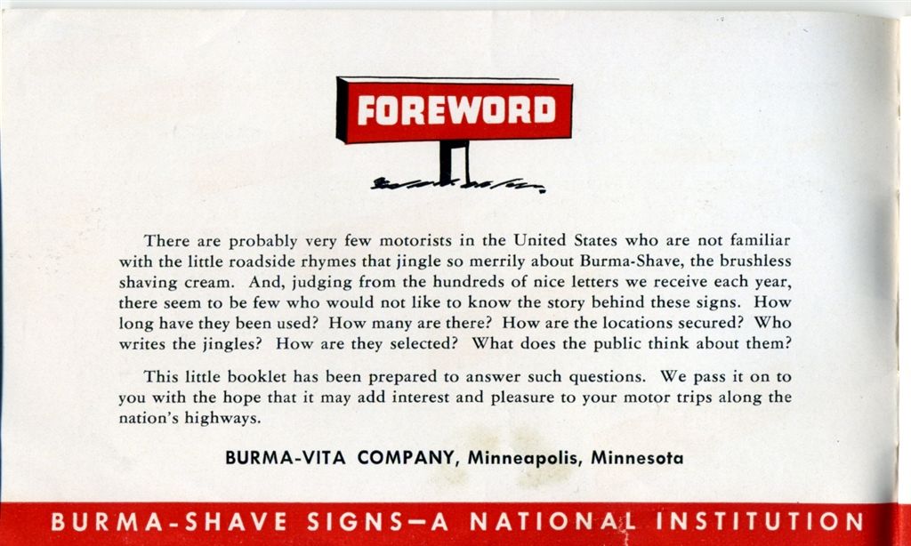 BBeM member Dan Perez has kindly contributed the following images from a Burma-Shave promotional brochure dated 1938.