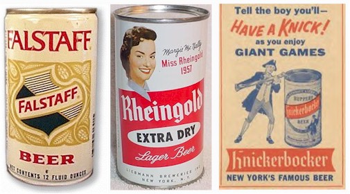 Knock, Knock for Knick...Knickerbocker Beer...Used'ta be a Knickerbocker Beer billboard alongside the street in Fort Lee, NJ, I lived on in the earlly 50s...saw it every day on my walk home from school... Another forgotten beer from the NYC area...Ballantine Beer...used to sponsor the Yankees...BTW does anyone remember the radio commercialsd feasturing Mel Brooks as the 200 YO Brewmaster??? Can't find 'em anywhere on Google...ANYWHERE!!!